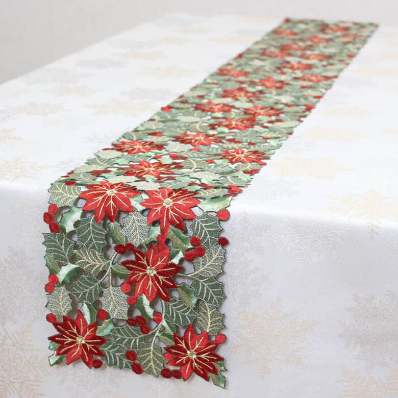 Xmas ポインセチア 刺繍 テーブルランナー 約20×160cm