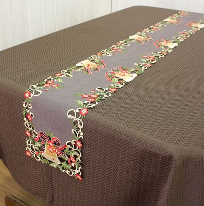 Xmas ゴールドベル 刺繍 テーブルランナー 約20×160cm
