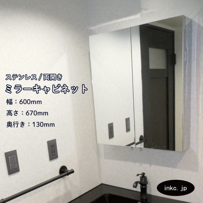 ミラーキャビネット 600 壁掛け ステンレス 両開き おしゃれ 四角 洗面台 洗面鏡 品番801