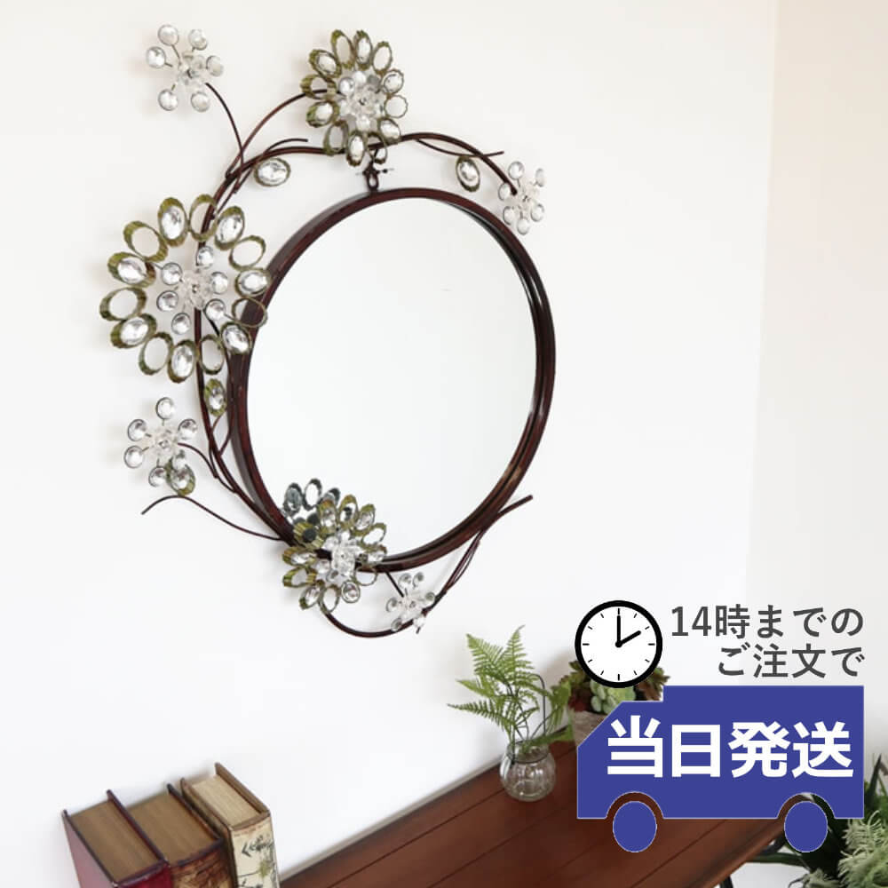 壁掛け鏡 アイアン製 ウォールミラー 幅68×高さ68cm|おしゃれなインテリアの輸入雑貨イエ【公式通販】