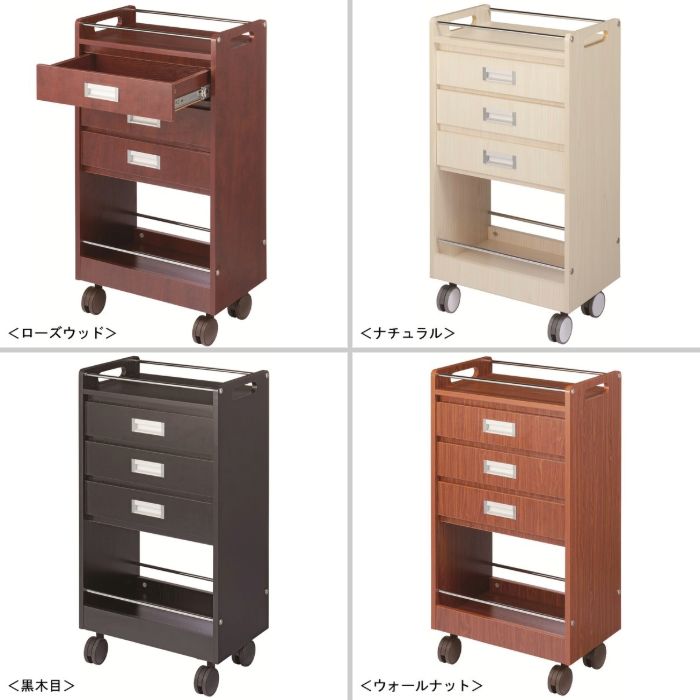 木製 ワームス セットワゴン C-341 引出しパット3段 カラー4色 日本製