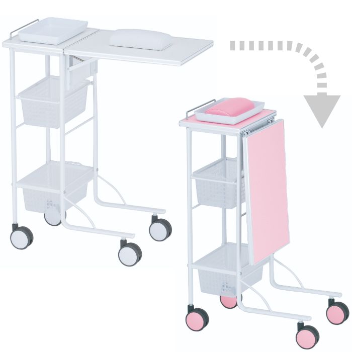 ネイルカウンターテーブル ホワイト ピンク 折りたたみワゴン 50151 日本製