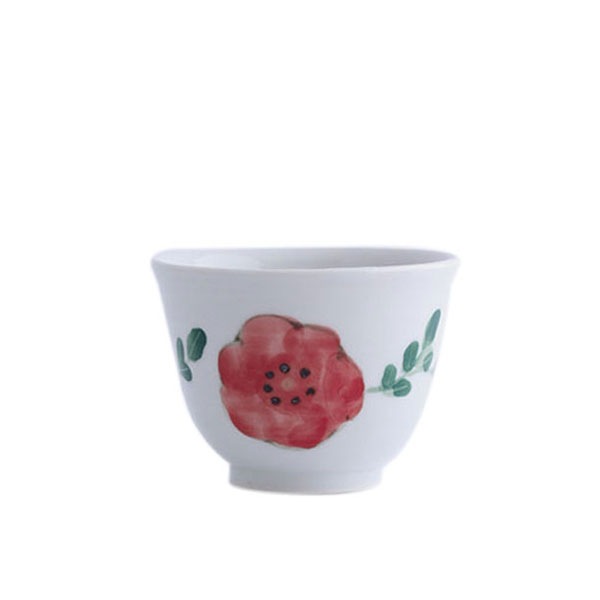 虚空蔵窯 新いっぷく碗/椿(赤絵) 九谷焼