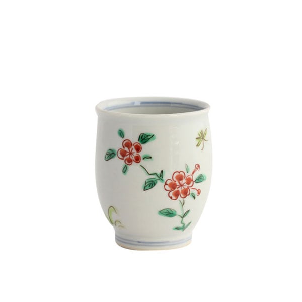 樋山真弓 湯呑(色絵花蝶) 九谷焼