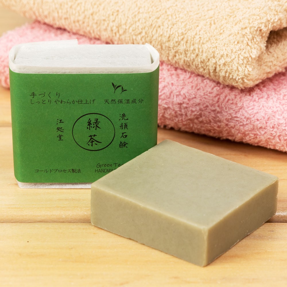 江処堂 洗顔石鹸 緑茶 芳醇な緑茶の香り 天然の保湿成分をまるごと閉じ込めたハンドメイド石けん Green tea hamdmad...