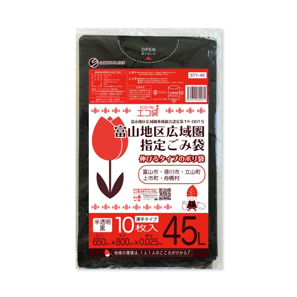 富山地区広域圏指定 ごみ袋45L 0.025mm厚(10枚×60冊)