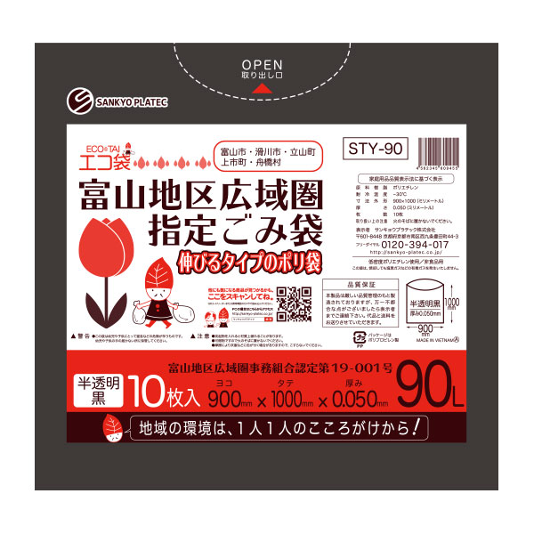 富山地区広域圏指定 ごみ袋90L 0.050mm厚(10枚×20冊)