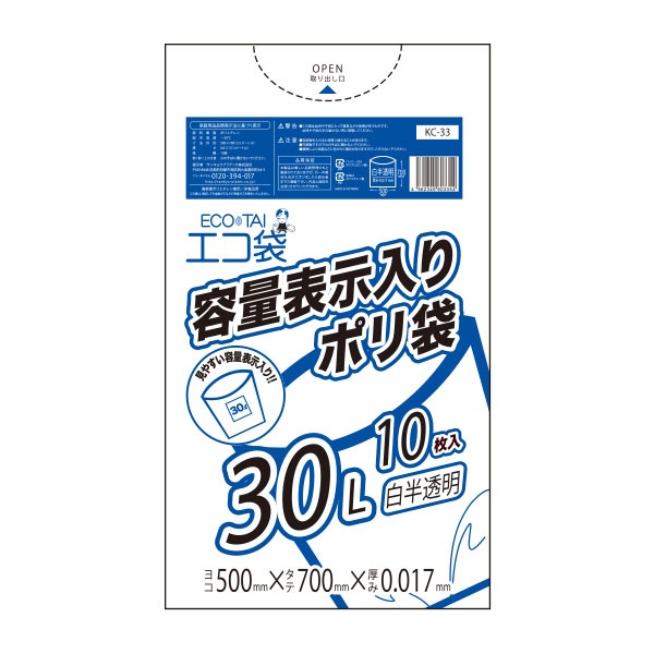 容量表示入りポリ袋30L 0.017mm厚(10枚×60冊×2箱)