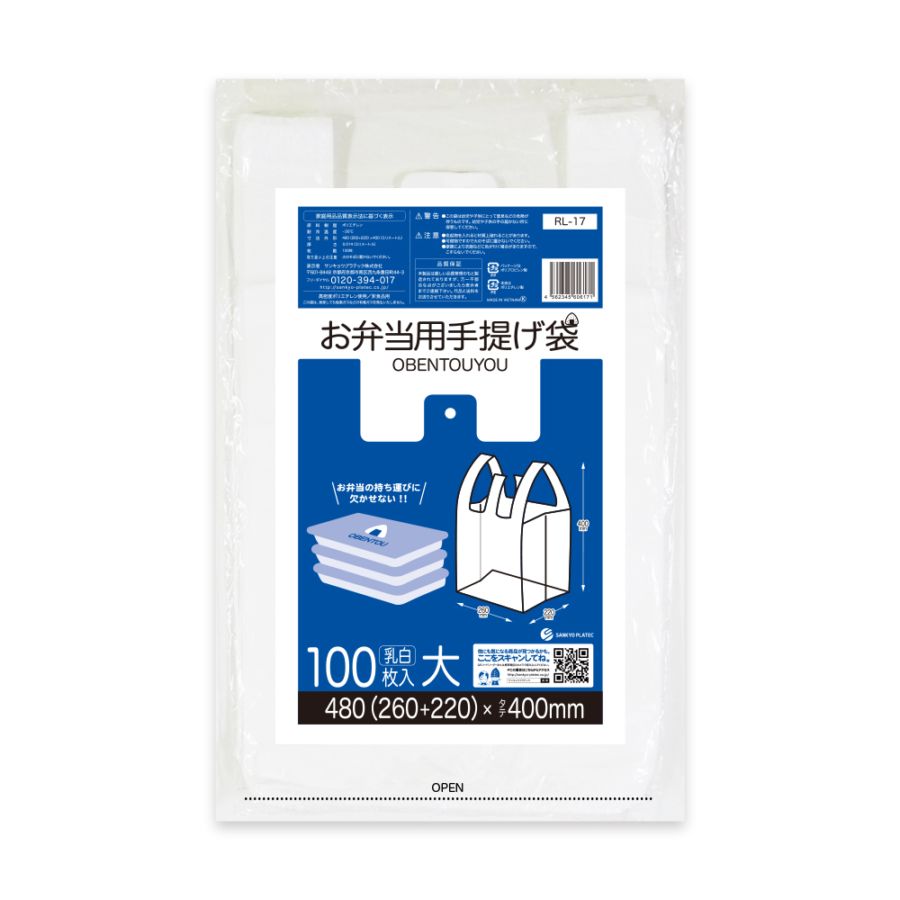 お弁当用手提げ袋 大サイズ 乳白 0.014mm厚(100枚×40冊)