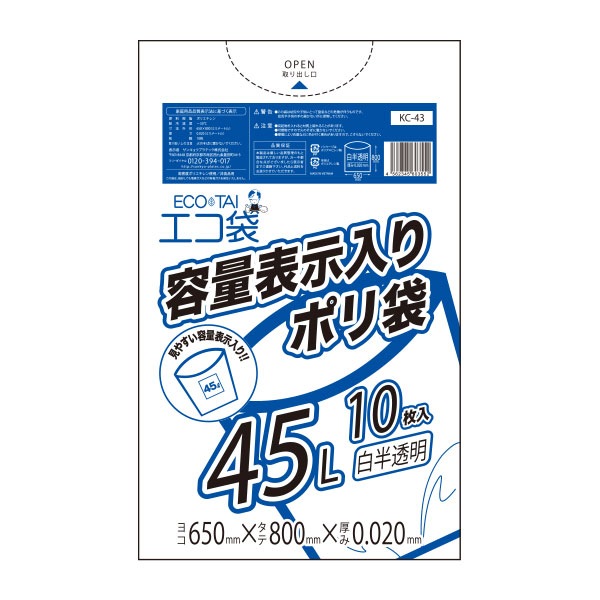 容量表示入りポリ袋45L 0.020mm厚(10枚×60冊)