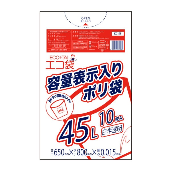 容量表示入りポリ袋45L 0.015mm厚(10枚×80冊)