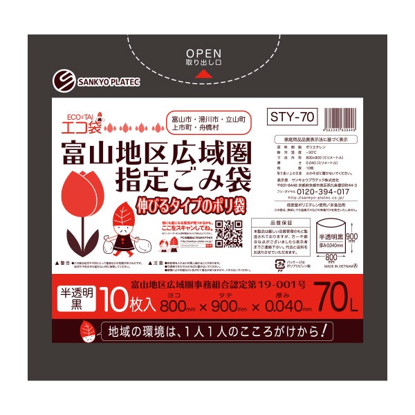 富山地区広域圏指定 ごみ袋70L 0.040mm厚(10枚×40冊)