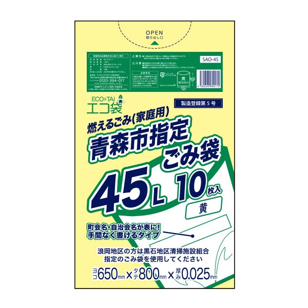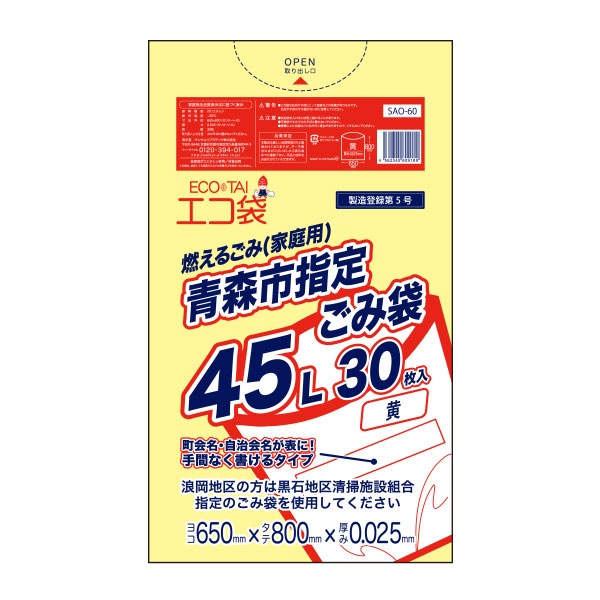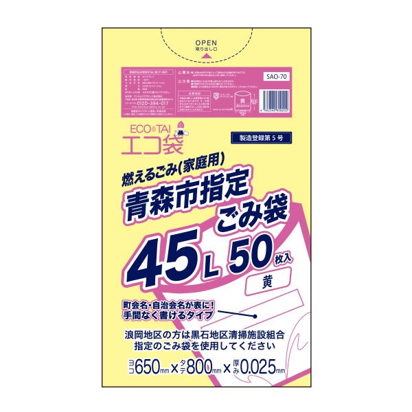 青森市指定ごみ袋45L 0.025mm厚 増量タイプ(50枚×15冊)
