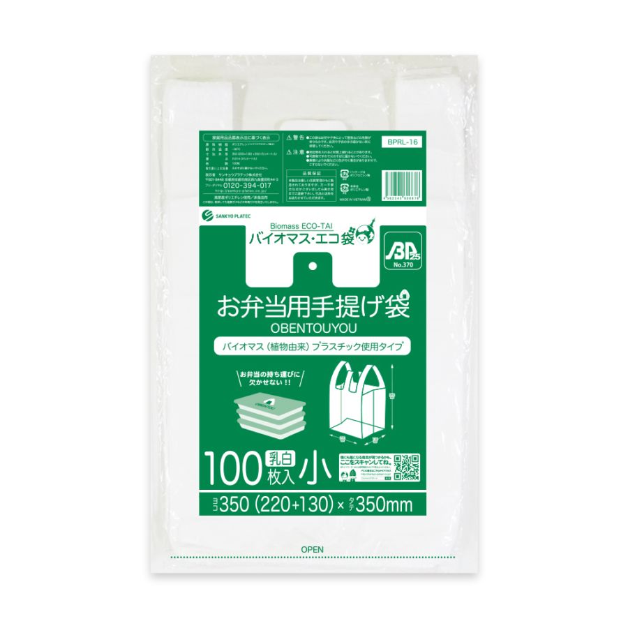 バイオマスプラスチック25%配合 お弁当用手提げ袋小サイズ ブロック有 乳白 0.014mm厚(100枚×60冊)
