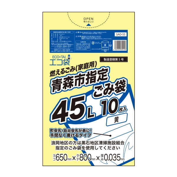 青森市指定ごみ袋45L 0.035mm厚 厚手タイプ(10枚×50冊)