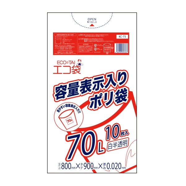 容量表示入りポリ袋70L 0.020mm厚(10枚×50冊)