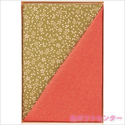 二巾一越織両面柄ふろしき 朱/利休×サメ小紋/小桜 90-8
