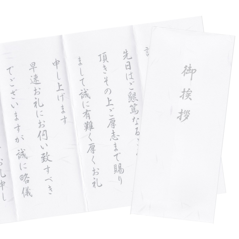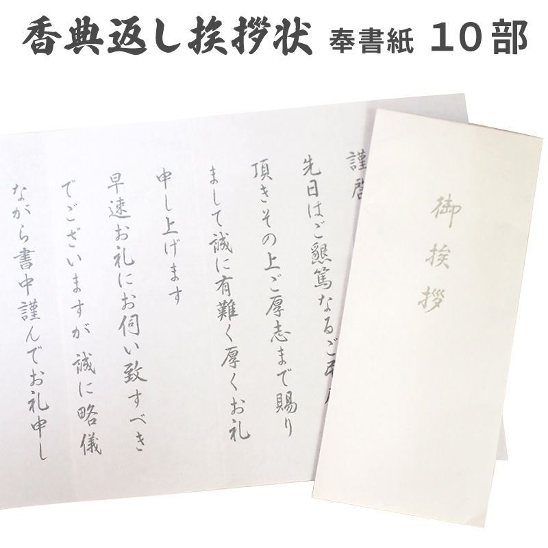 香典返し 挨拶状 ホワイト 奉書紙 10部 巻紙 封筒 文章印刷済み