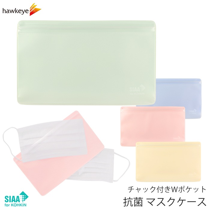 【無地】SIAA登録 抗菌マスクケース Wポケット日本製|ピンク ブルー クリーム グリーン