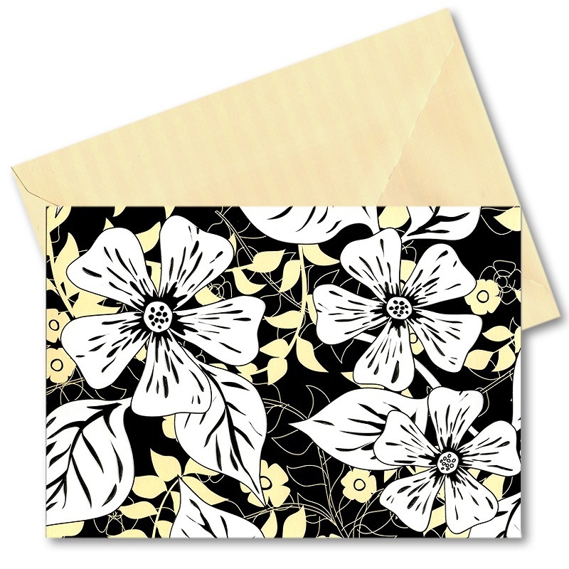 ロジャーラボード 【多目的】 グリーティングカード Lサイズ (フラワー×ホワイト×背景ブラック)エンボス加工