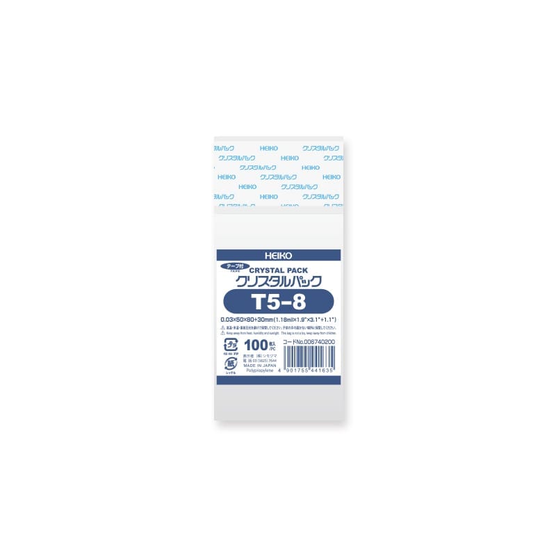 HEIKO OPP袋 クリスタルパック T5-8 (テープ付き) 100枚/袋