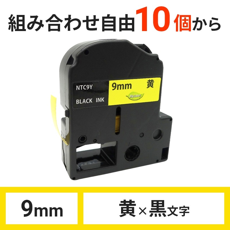 NTC9Y テプラPRO用[9mm×黄 / 黒文字]キングジム KING JIM 互換ラベルテープ【組み合わせ自由10個から注文O...