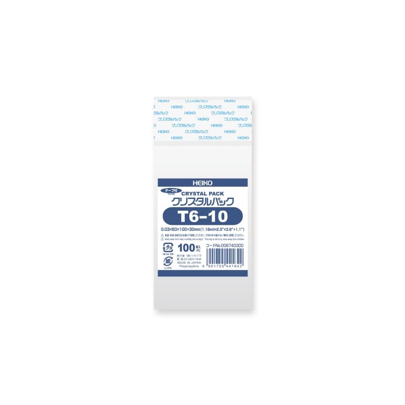 HEIKO OPP袋 クリスタルパック T6-10 (テープ付き) 100枚/袋 シモジマ