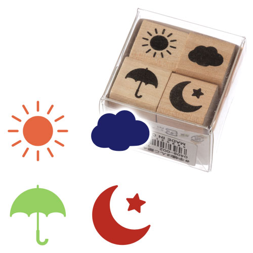 手帳はんこ部 天気 (0409-002) ミニはんこ4個セット 手帳やふせんに 簡単スケジュール管理 ラバースタンプ こどものかお...