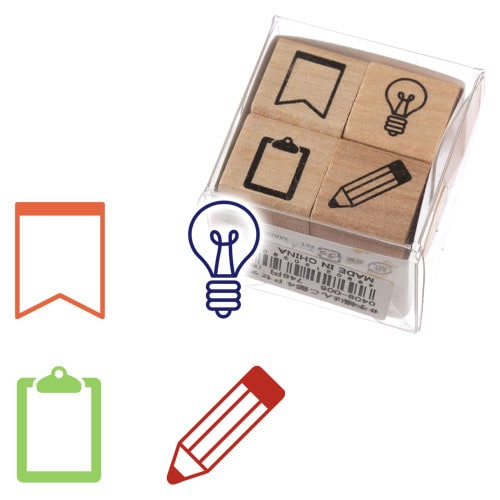 手帳はんこ部 アイデア (0409-006) ミニはんこ4個セット 手帳やふせんに 簡単スケジュール管理 ラバースタンプ こどもの...