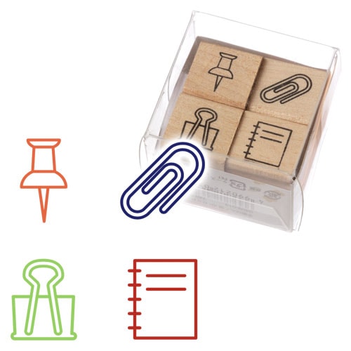 手帳はんこ部 クリップメモ (0409-013) ミニはんこ4個セット 手帳やふせんに 簡単スケジュール管理 ラバースタンプ こど...