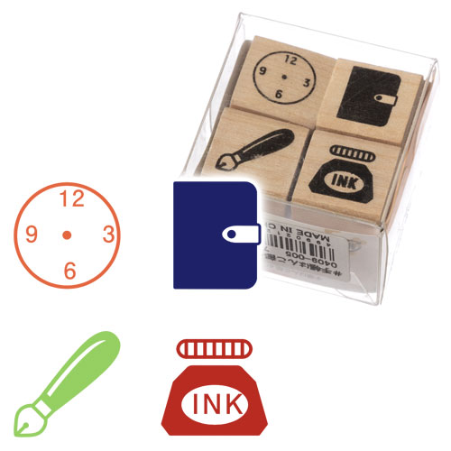 手帳はんこ部 お買い物 (0409-007) ミニはんこ4個セット 手帳やふせんに 簡単スケジュール管理 ラバースタンプ こどもの...