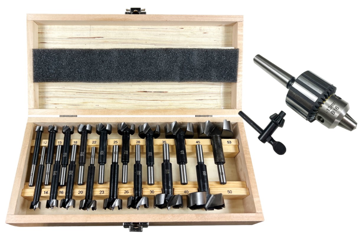 ピーウッド フォスナービット17本セット+ドリルチャック