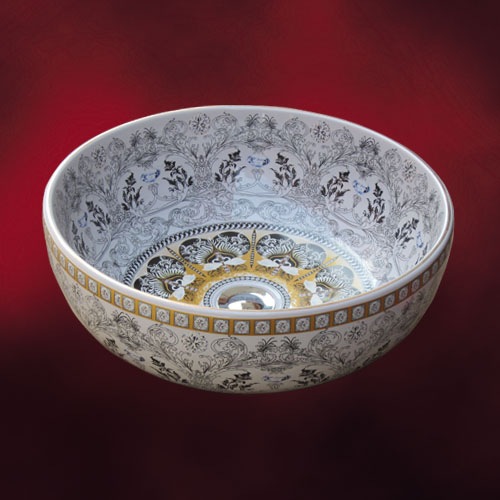 【廃番】陶器洗面ボウル(手洗い鉢・オンカウンターシンク・絵・柄)ΦW410×H155 INK-0403185H
