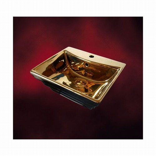 【廃番】メタリック洗面ボウル(金・陶器・洗面台・手洗い鉢)金色排水栓付属W510×D440×H200 INK-0411002H