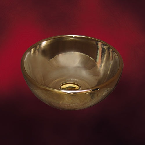 【廃番】洗面ボウル 手洗い器 陶器 おしゃれ 置き型 オーバーフロー無し 金 ゴールド φ310×H140 | 品番INK-041...