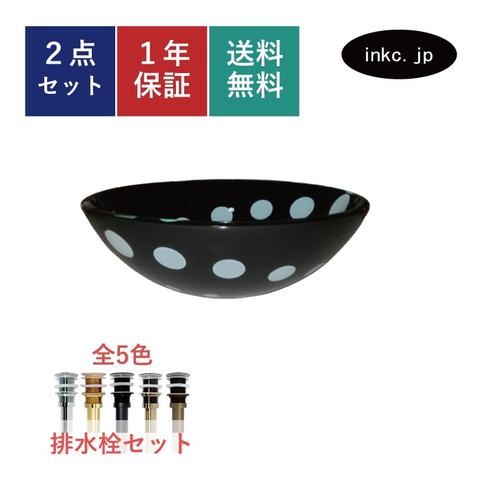 洗面ボウル おしゃれ 水玉 赤白 ガラス 丸 手洗い鉢 Φ430×H150 INK-0404025H (CH1006)