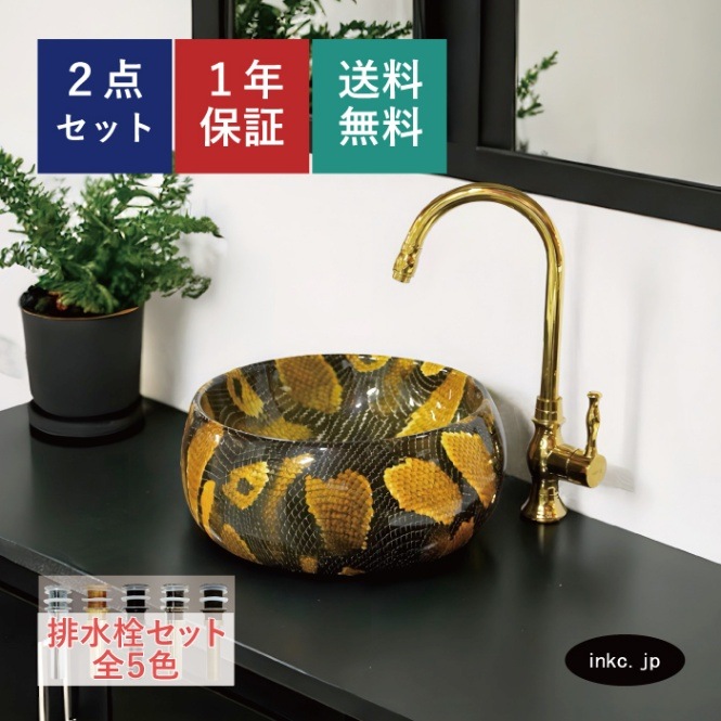 洗面ボウル おしゃれ ヘビ柄 インパクト 丸 手洗い鉢 置き型 オーバーフロー無し Φ400×H155 INK-0403191H