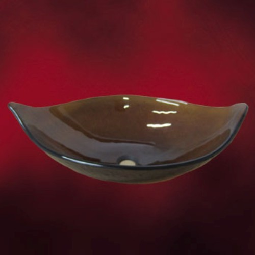 【廃番】品番INK-0404046G | 茶が枯れ葉を思わせるカラーのガラス洗面ボウル(手洗い鉢)W585×D370×H185