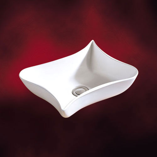 【廃番】品番INK-CF8113red | 形状が特徴的な赤いガラス洗面ボウル(訳あり)W655×D500×H195