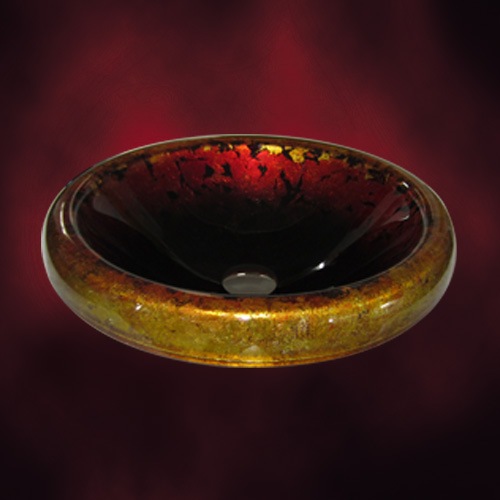 【廃番】品番INK-0404029H | 金色と赤色を織り交ぜたゴージャスなガラス洗面ボウル(手洗い鉢)Φ425×H150