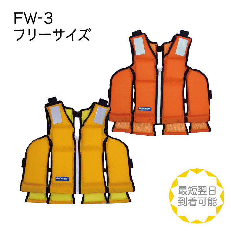 【選択あり】東洋物産 小型船舶用 救命胴衣 FW-3 フリーサイズ イエロー オレンジ / ライフジャケット ESPADA 国土交...
