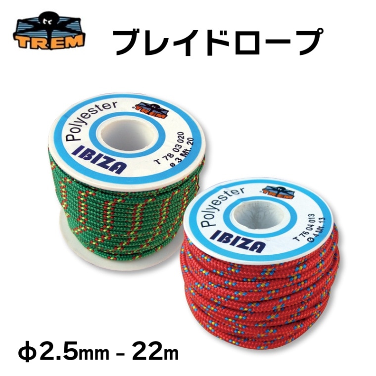 【選択あり】TREM ブレイドロープ 2.5mm 22m 1巻 / グリーン レッド IBIZA ポリエステル 万能ロープ 補助ロ...