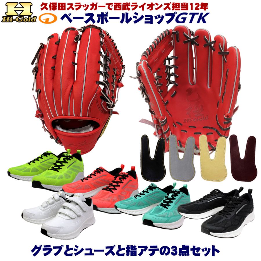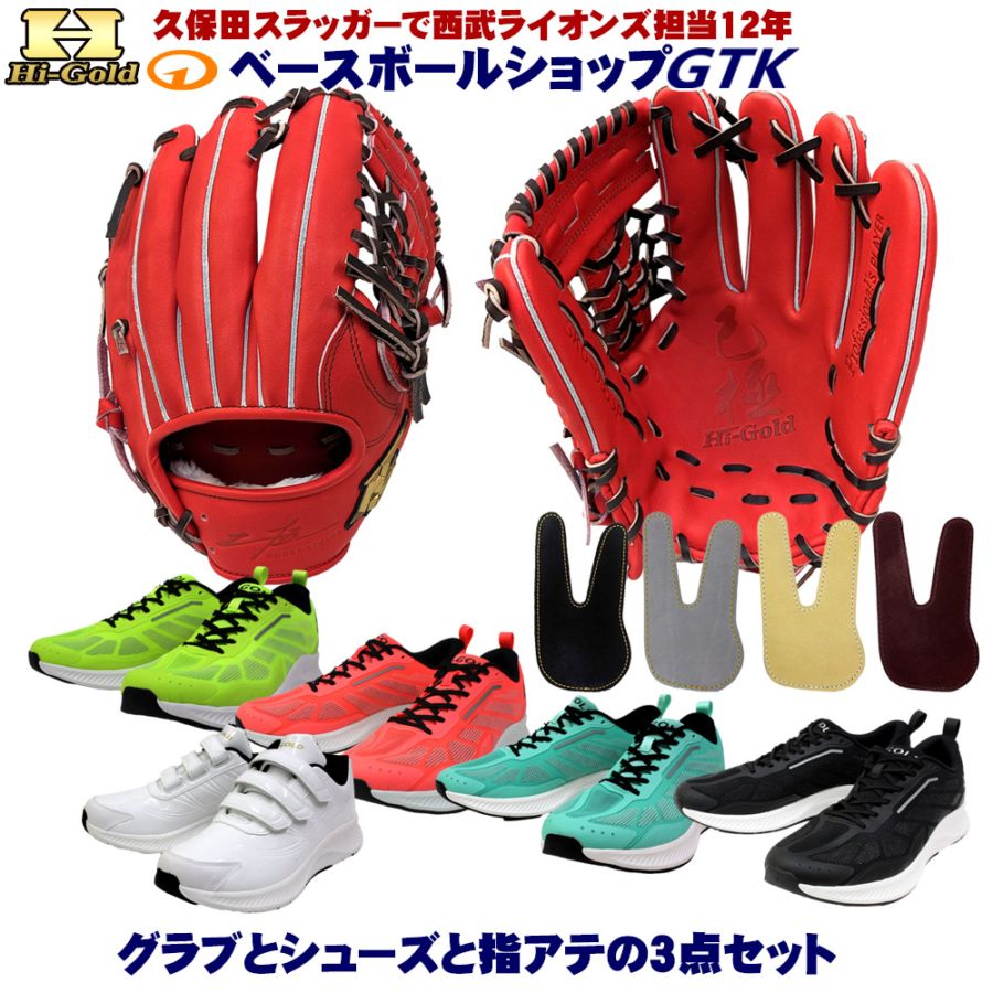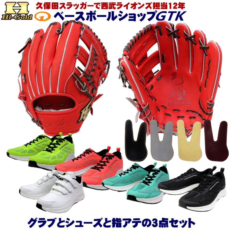 硬式グラブとシューズとフィンガープロテクトレザー3点セットで29,800円!ハイゴールド SKG-038SP バーニングオレンジ ...