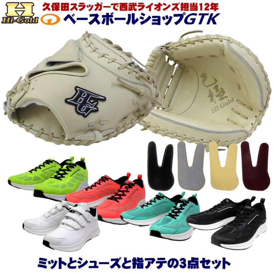 硬式キャッチャーミットとシューズとフィンガープロテクトレザー3点セットで33,000円!ハイゴールド SKG-350M ブラック ...