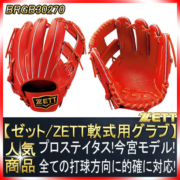 ゼット プロステイタス BRGB30270 名手今宮モデル ディープオレンジ(5800)一般軟式用 ショート用グラブ サイズ4 革...