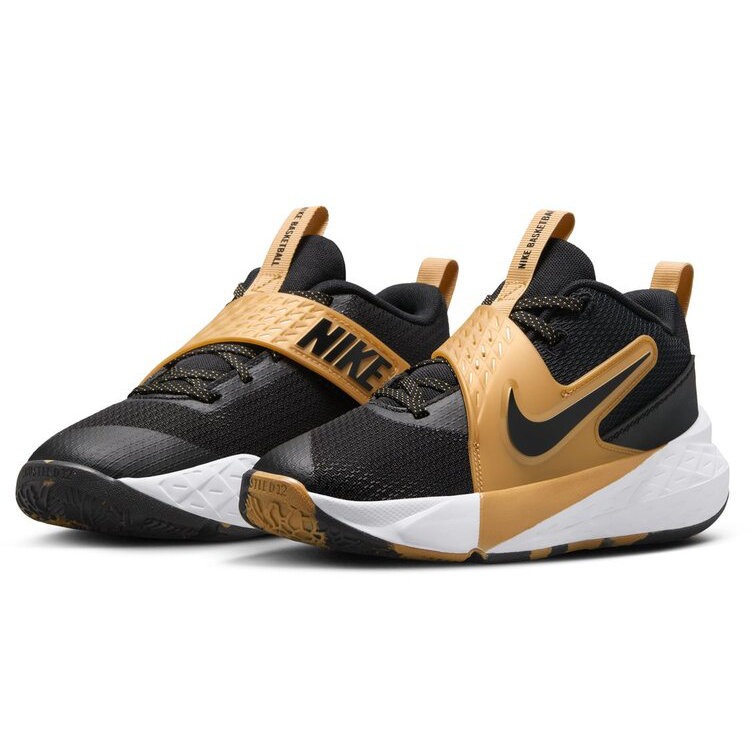 ナイキ チーム ハッスル D12 GS ジュニア キッズ バスケットボールシューズ ブラック/ブラック/メタリックゴールド HF6...