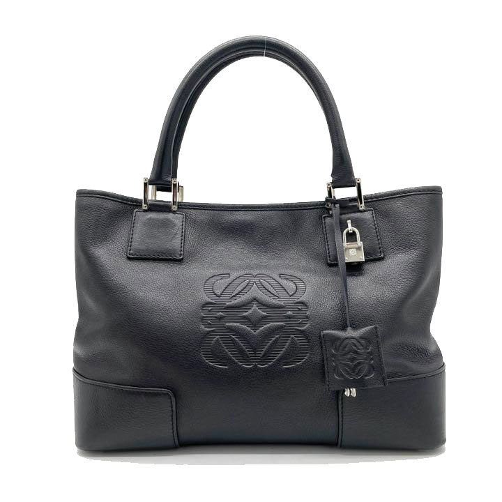 LOEWE ロエベ ハンドバッグ フスタ アナグラム レザー ブラック シルバー金具