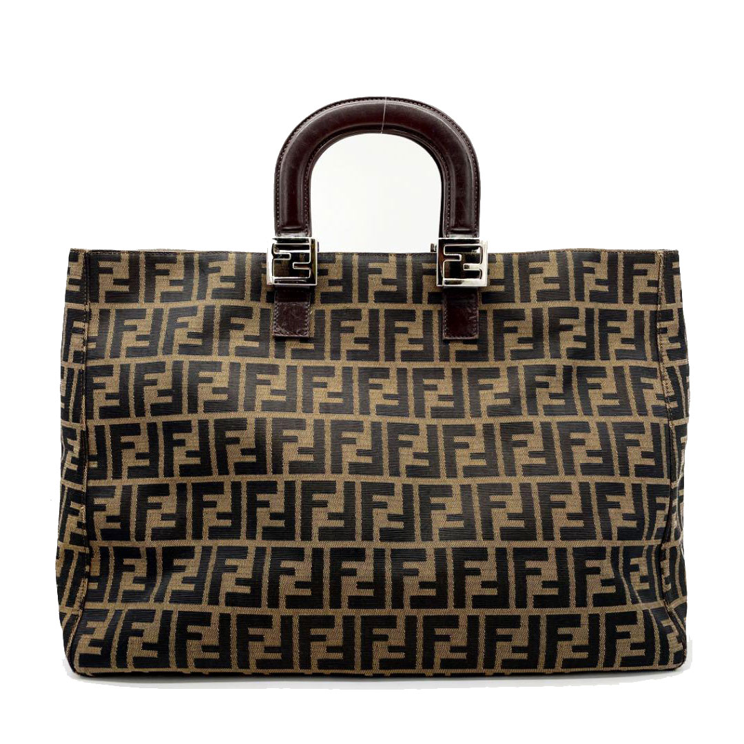 FENDI フェンディ ハンドバッグ ズッカ柄 キャンバス レザー ブラウン系 シルバー金具
