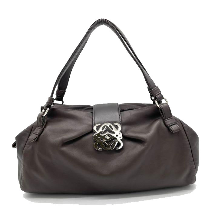 LOEWE ロエベ ハンドバッグ アナグラム ナッパレザー ブラウン シルバー金具
