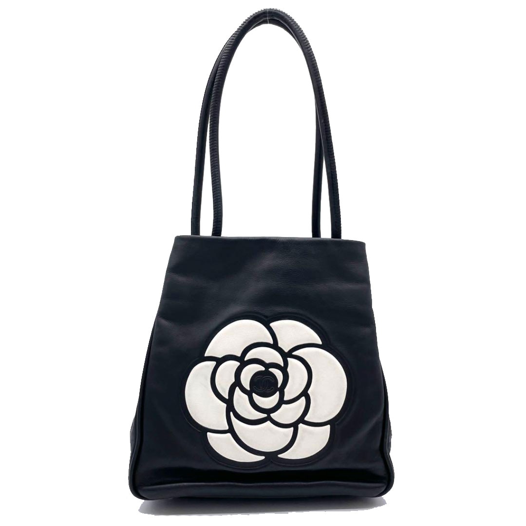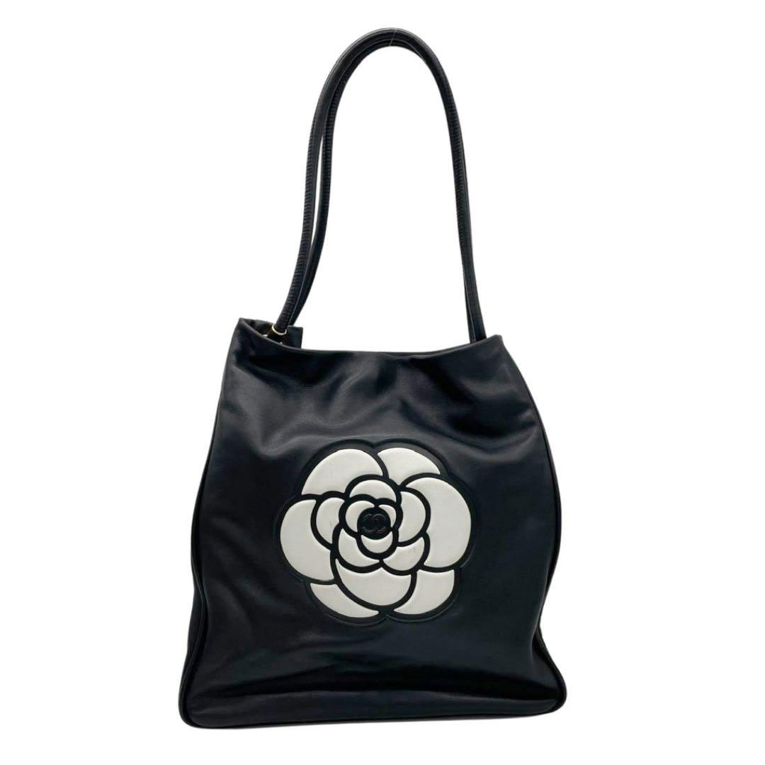 CHANEL シャネル トートバッグ カメリア レザー ブラック ホワイト 7番台